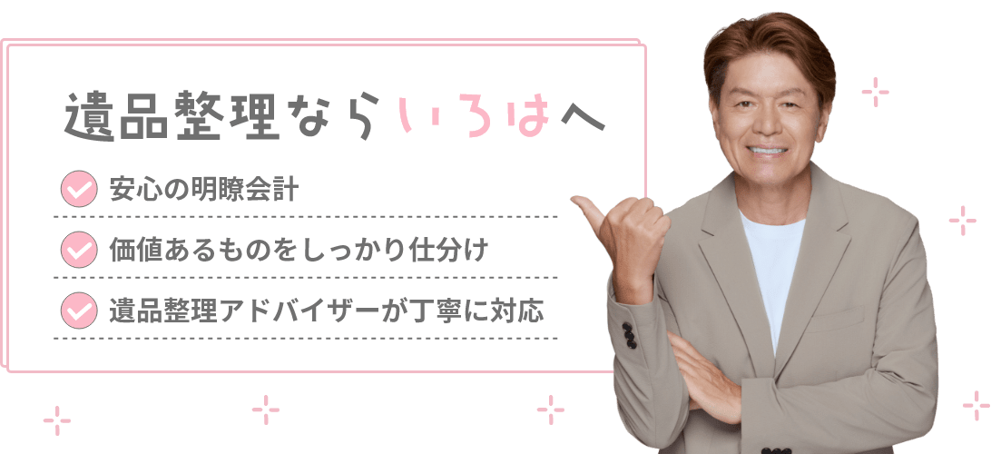 遺品整理・遺品買取・生前整理・ハウスクリーニングに関することなら 「いろは」におまかせください。 様々なご要望にお答えできるよう精一杯努力させていただきます。